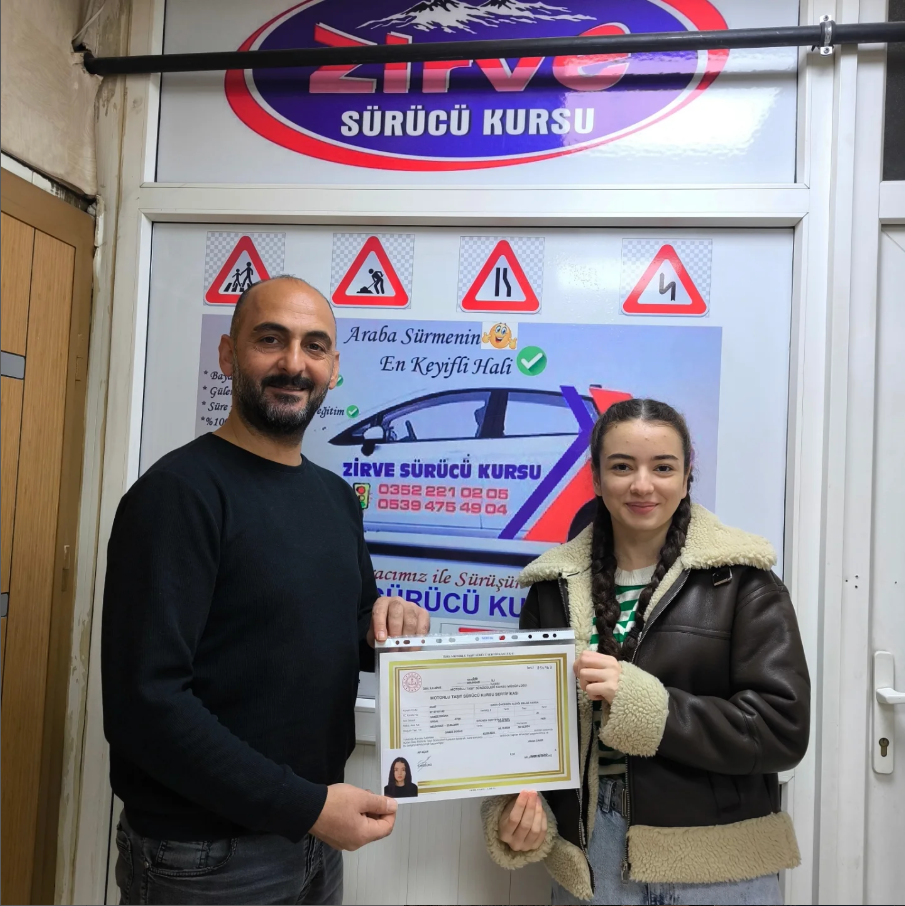 Sürücü olmak benim için büyük bir adımdı ve bu süreçte Zirve Sürücü Kursu'ndan aldığım destekle başardım. Şimdi daha güvenli ve deneyimli bir sürücüyüm. Çok teşekkür ederim!
